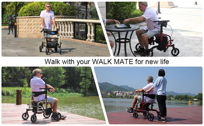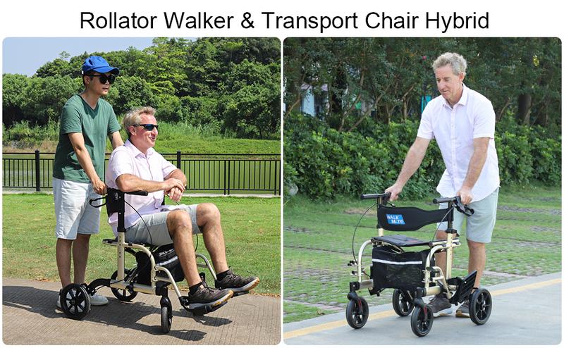 - 【2 IN 1 Rollator Walker for Seniors】WALK MATE Rollator Walker comes with transport wheelchair function, the reversible footrest provides foot support for persons with limited mobility and makes it more convenient for the escort to shift position, the reversible soft widen backrest allows you to sit and rest at any time.