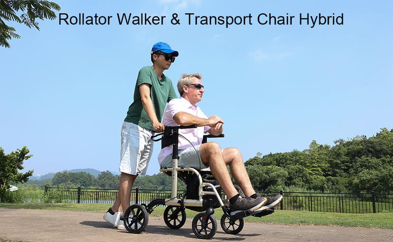 2 in 1 Rollator Walker Transport Chair for Seniors, 10” Wheels Medical Rollator for Seniors with Widen Seat Backrest