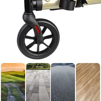 - 【Big Wheels for Medical Rollator Walker】 Our WAlK MATE rollator comes with 10” rear wheels, the anti skid tread pattern on wheels can increase resistance and can provide stronger grip to prevent the slipping between wheels and road.
